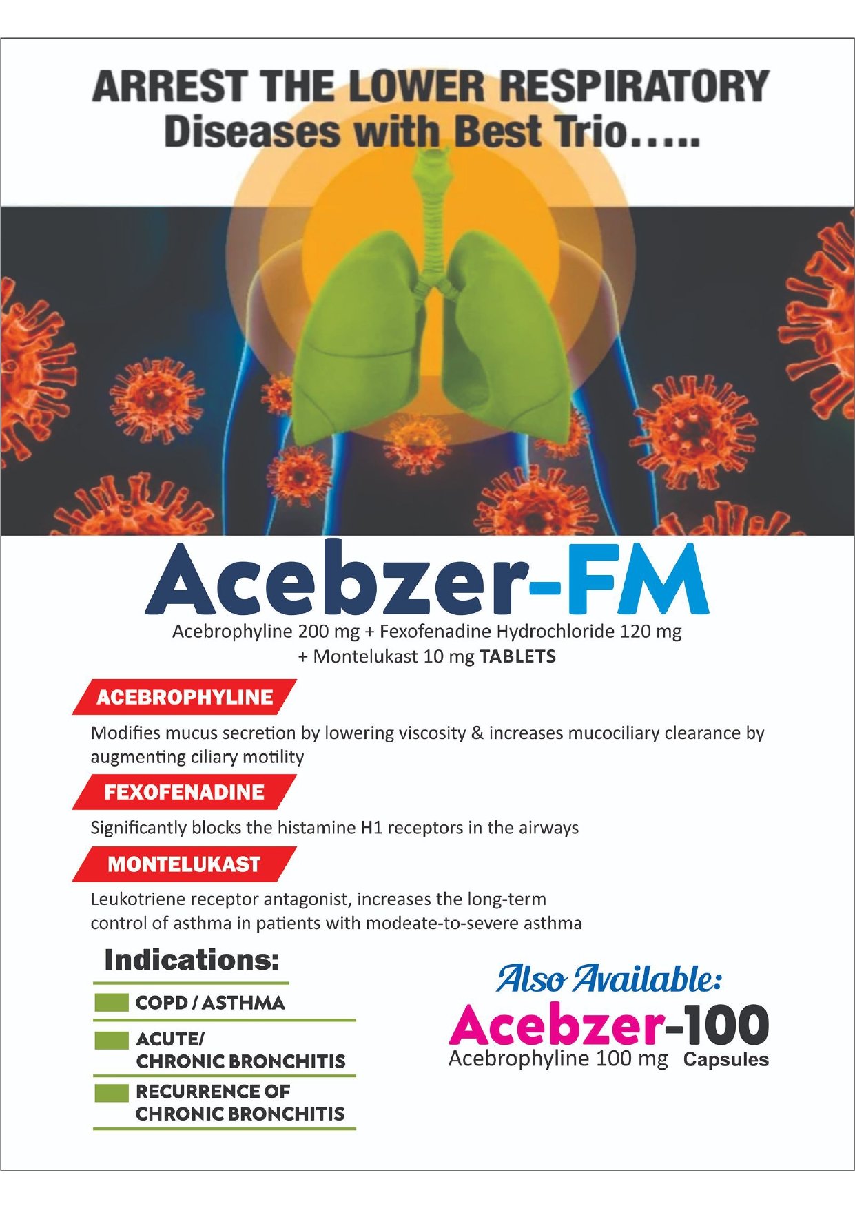 ACEBROPHYLINE 200 MG + FEXOFENADINE HCL 120 MG + MONTELUKAST 10 MG