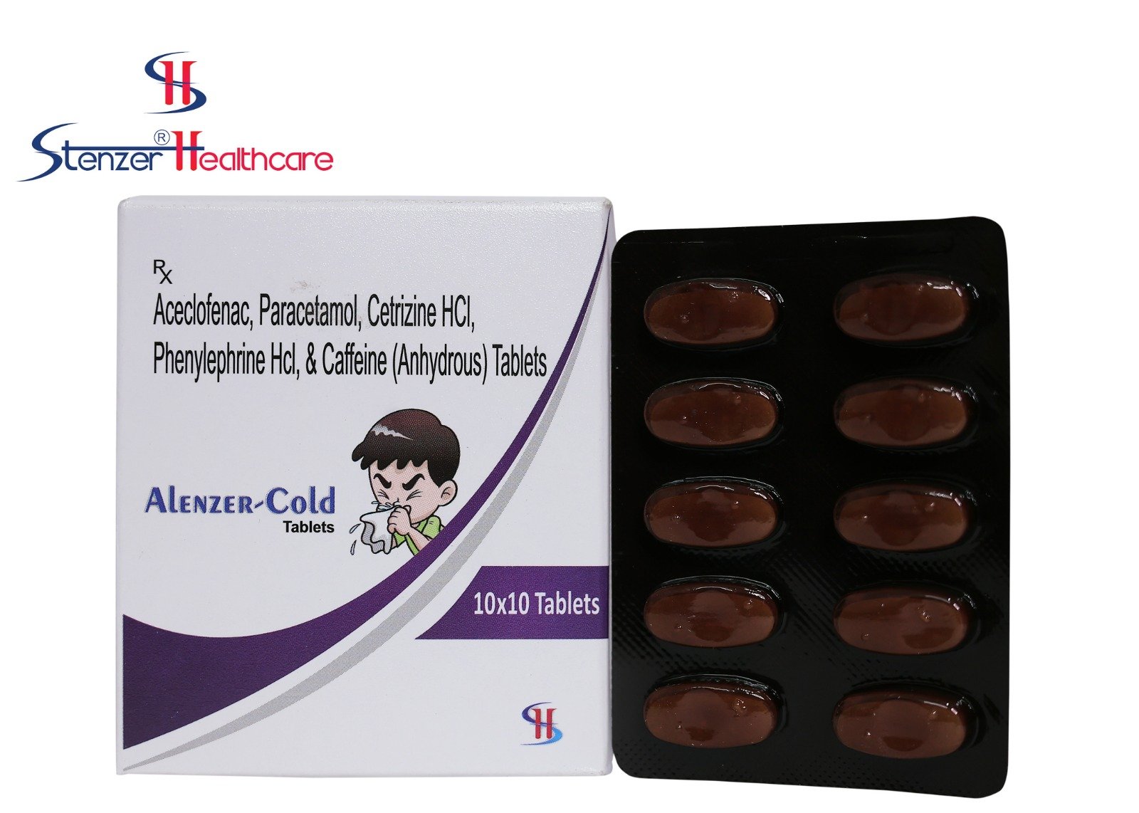 ACECLOFENAC 100 MG + PARACETAMOL 325 MG + CETIRIZINE HCL 10MG + PHENYLEPHRINE 5MG + CAFFEINE 25MG