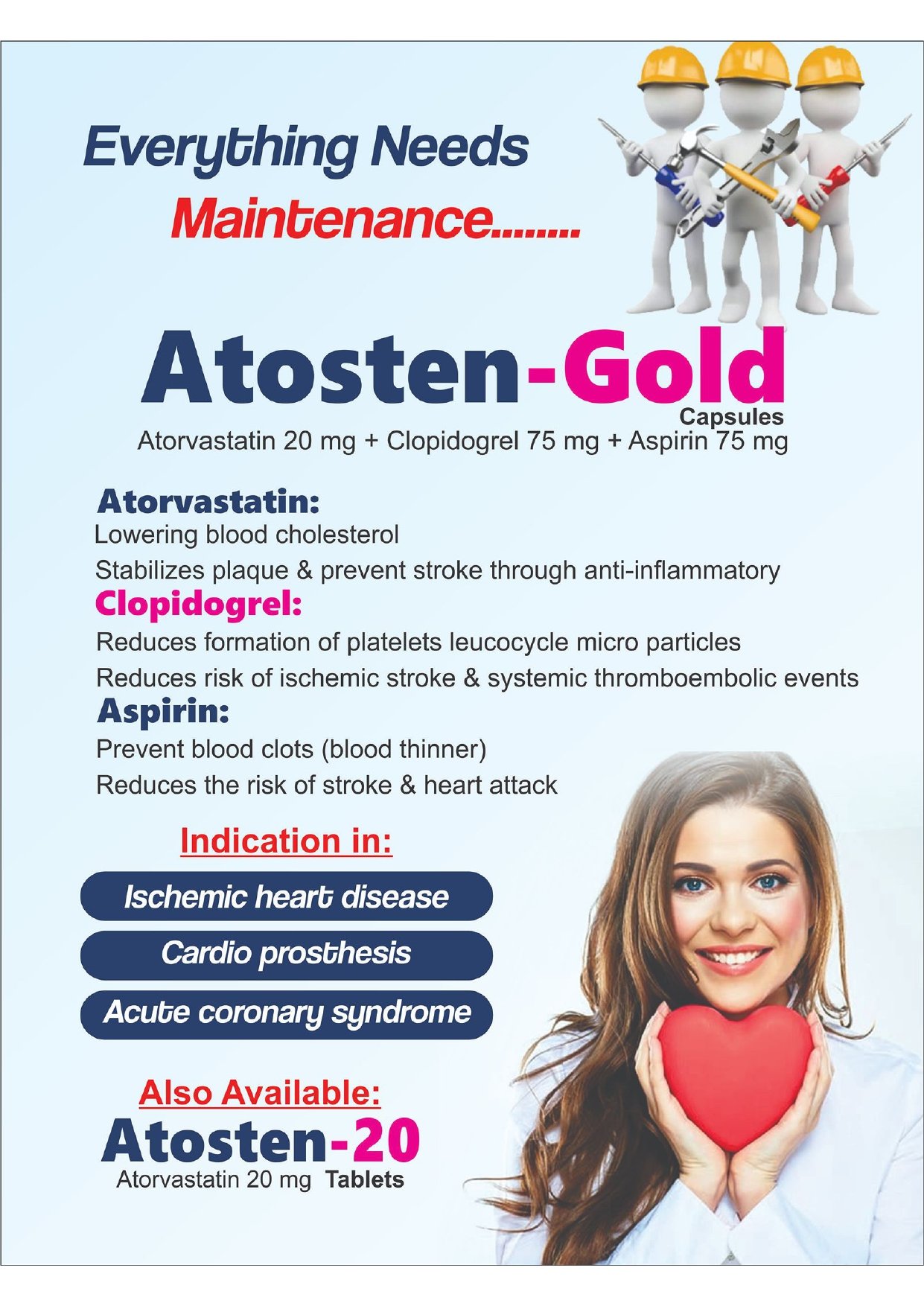 ATORVASTATIN 20 MG + CLOPIDROGREL 75 MG + ASPIRIN 75 MG CAPSULES