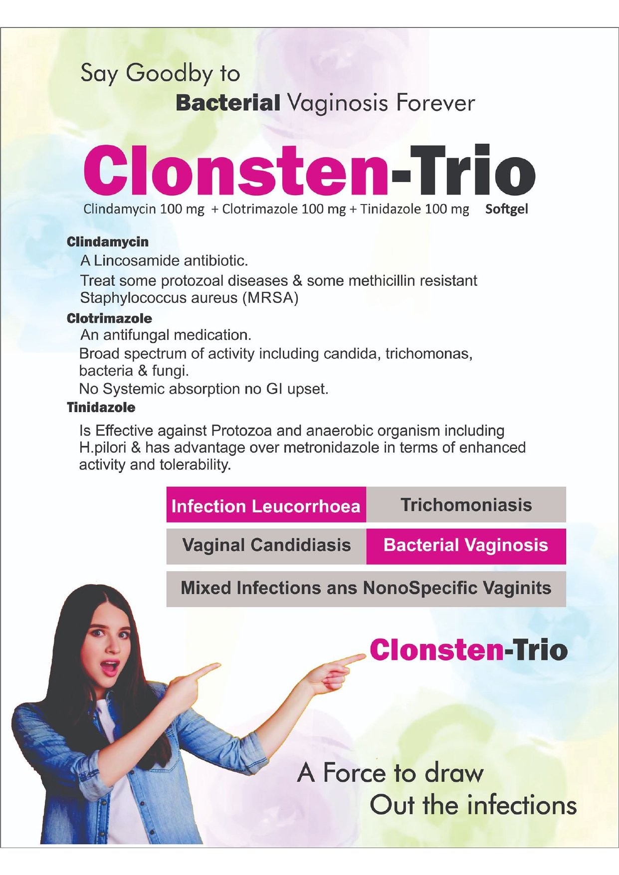 CLINDAMYCIN 100MG + CLOTRIMAZOLE 100MG + TINIDAZOLE 100MG SOFTGEL